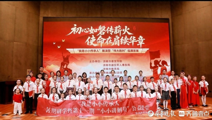 8月26日,以“初心如磐传薪火 使命在肩续华章”为主题的“我是小小传承人”结业展演暨“伟大胜利”主题临展首展活动在济南市图书馆成功举行。